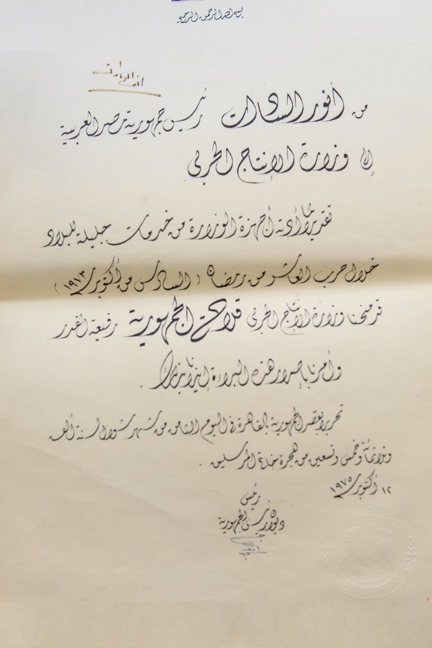 منح رئيس الجمهورية الأسبق محمد أنور السادات "قلادة الجمهورية" لوزارة الإنتاج الحربي تنفيذاً للقرار الجمهوري رقم (989) الصادر في 12 أكتوبر 1975، وذلك تقديرًا لما أدته الجهات التابعة للوزارة من خدمات جليلة للبلاد خلال حرب أكتوبر 1973، وتسلّم القلادة والبراءة الخاصة بها المهندس جمال الدين محمد صدقي وزير الدولة للإنتاج الحربي آنذاك، والذي تولى الحقيبة الوزارية في الفترة من 19 مارس 1976 حتى 8 مايو 1978.
