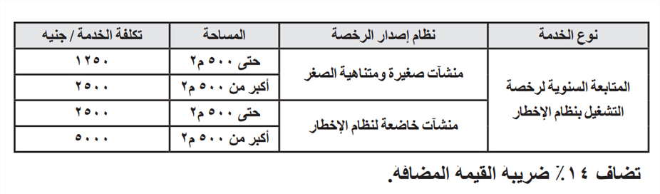 أما بالنسبة لرخصة التشغيل بالنظام الإخطار يحق للمستثمر سداد رسوم المتابعة السنوية عن عام أو أكثر بحد أقصي خمس سنوات