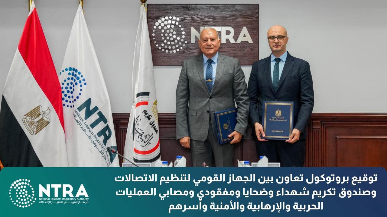 وقّع الجهاز القومي لتنظيم الاتصالات، وصندوق تكريم شهداء وضحايا ومفقودي ومصابي العمليات الحربية والأمنية وأسرهم، اليوم الاثنين، بروتوكول يهدف إلى تعزيز التعاون بين الجانبيّن، من خلال تبادل الخبرات والتنسيق المشترك، لتقديم خدمات اتصالات ميسرة ومتطورة للمستفيدين من الصندوق.