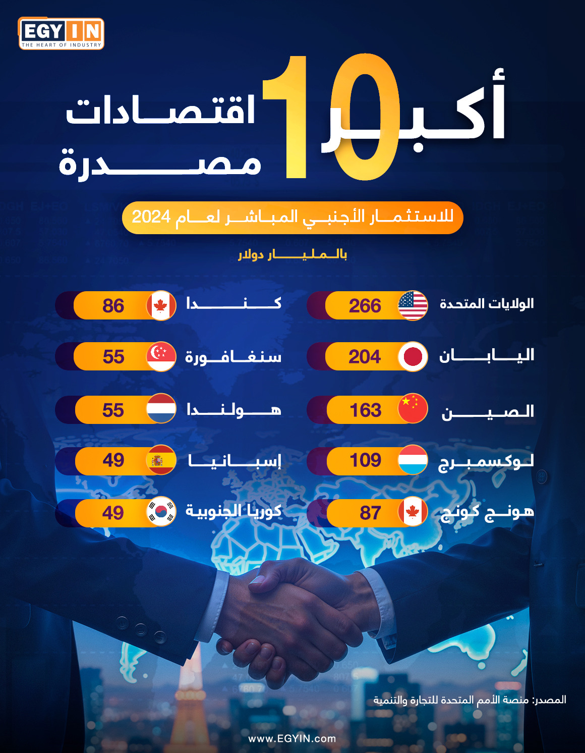 أكبر 10 اقتصادات مصدرة للاستثمار الأجنبي المباشر لعام 2024 (إنفوجراف)