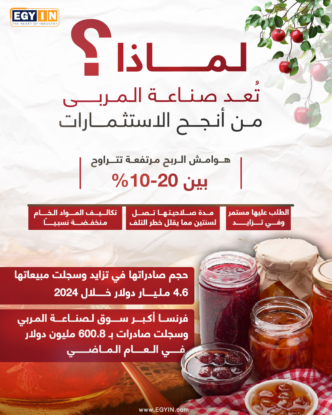 لماذا تُعد صناعة المربي من أنجح الاستثمارات؟ (انفوجراف)
