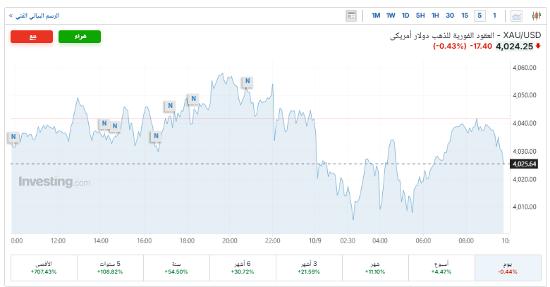 هدوء مؤقت في أسعار الذهب عالميًا ويستقر فوق 4 آلاف دولار للأوقية
