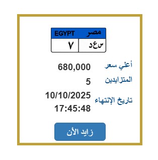 ويستمر المزاد على هذه اللوحة لفترة محددة عبر بوابة “لوحتك دوت كوم” التابعة لوزارة الداخلية، وتخصص عوائد هذه اللوحات لصالح صندوق تحيا مصر.