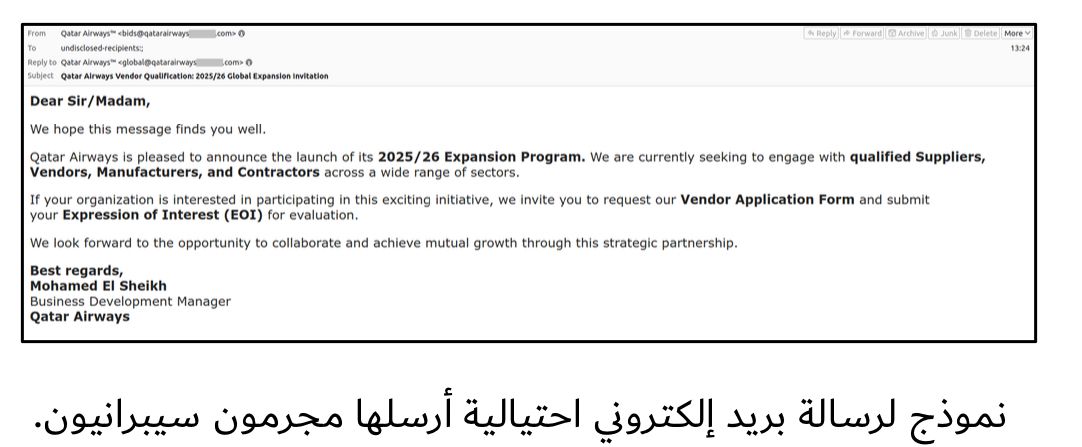 الرسائل الاحتيالية مرسلةٌ من أقسام المشتريات في شركات طيران
