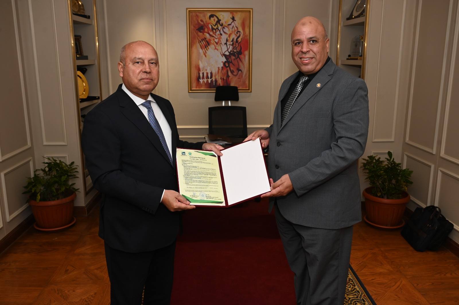 سلم الفريق مهندس كامل الوزير، نائب رئيس مجلس الوزراء للتنمية الصناعية وزير الصناعة والنقل شهادات التحقق من تقارير البصمة الكربونية لممثلي 6 شركات محلية رائدة في مختلف القطاعات الصناعية، وذلك بحضور الدكتور خالد حسن صوفي، رئيس الهيئة المصرية العامة للمواصفات والجودة.