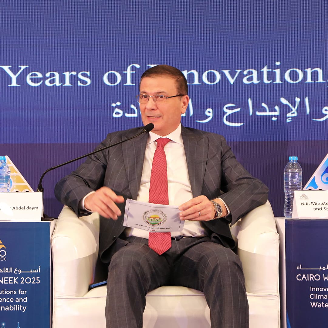 جاء ذلك خلال مشاركته، والدكتور هاني سويلم وزير الموارد المائية والري، والمهندس أيمن عطية محافظ القليوبية، في الحلقة النقاشية التي أقيمت، تحت عنوان: "من البحث إلى السياسة.. تشكيل مستقبل المياه في مصر" ضمن فعاليات "أسبوع القاهرة الثامن للمياه"، والاحتفال باليوبيل الذهبي للمركز القومي لبحوث المياه.
