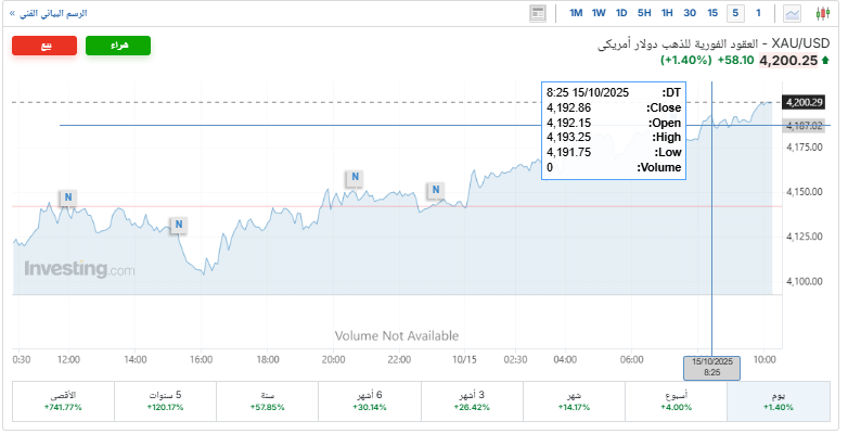 تاريخي، الذهب يسجل 4200 دولار للأوقية لأول مرة اليوم