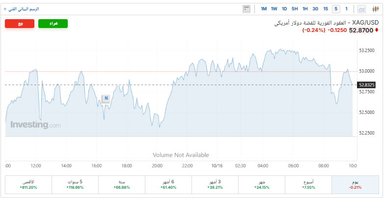 وسط نقص في المعروض، الفضة تتجاوز 53 دولارًا للأوقية عالميًا