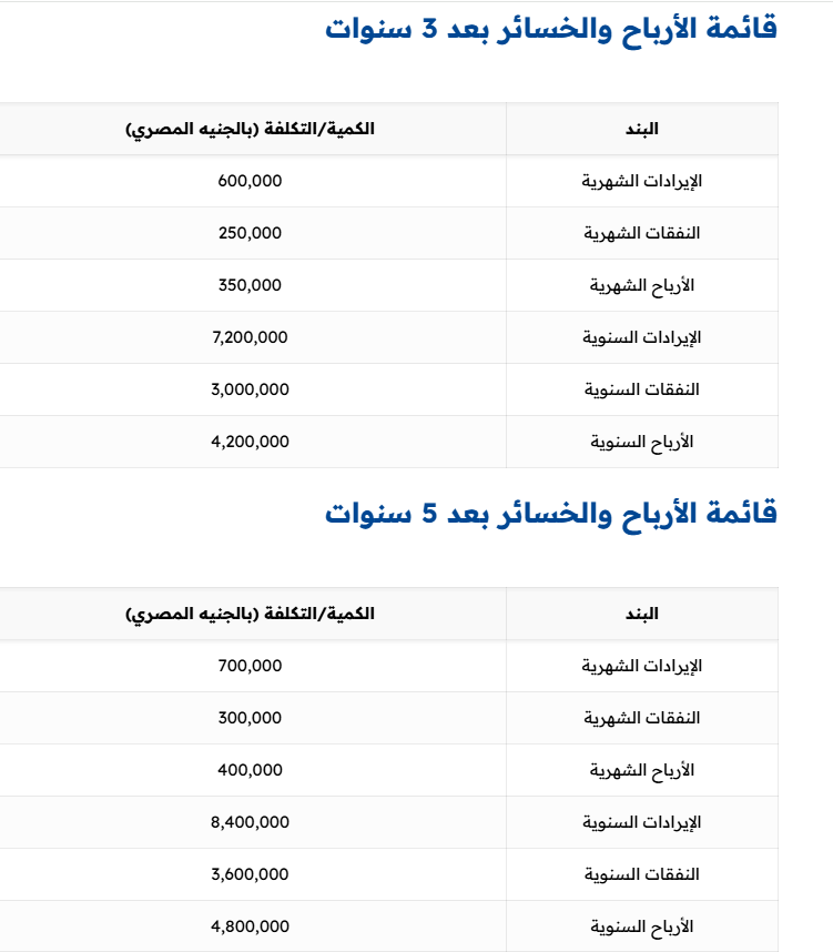 الأرباح الشهرية المتوقعة: ستكون 230,000 جنيه مصري بعد خصم النفقات.