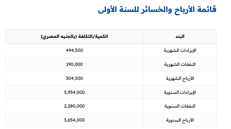 الربحية السنوية: 195,000 × 12 = 2,340,000 جنيه مصري