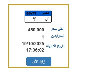للباحثين عن لوحة سيارة مميزة، طرح «أ ل 3» بسعر مبدئي 450 ألف جنيه