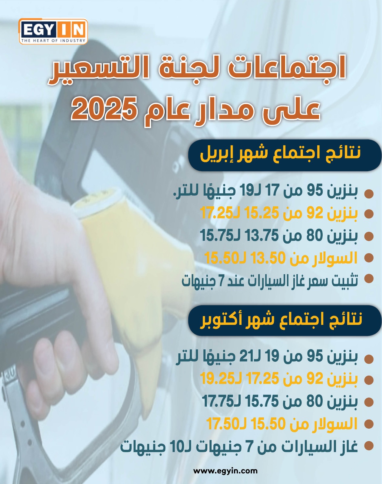 نتائج اجتماعات لجنة التسعير التلقائي للمواد البترولية لعام 2025 (إنفوجراف)