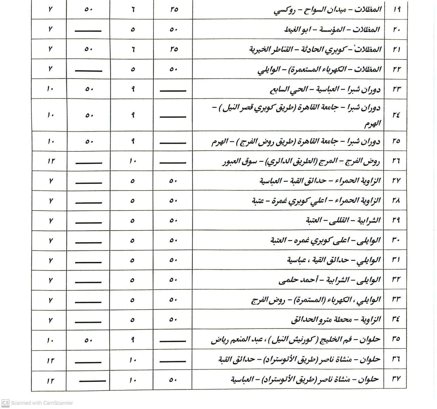وجاءت التعريفة الجديدة لسيارات السرفيس ووسائل النقل الجماعي بمحافظة القاهرة كالتالي: