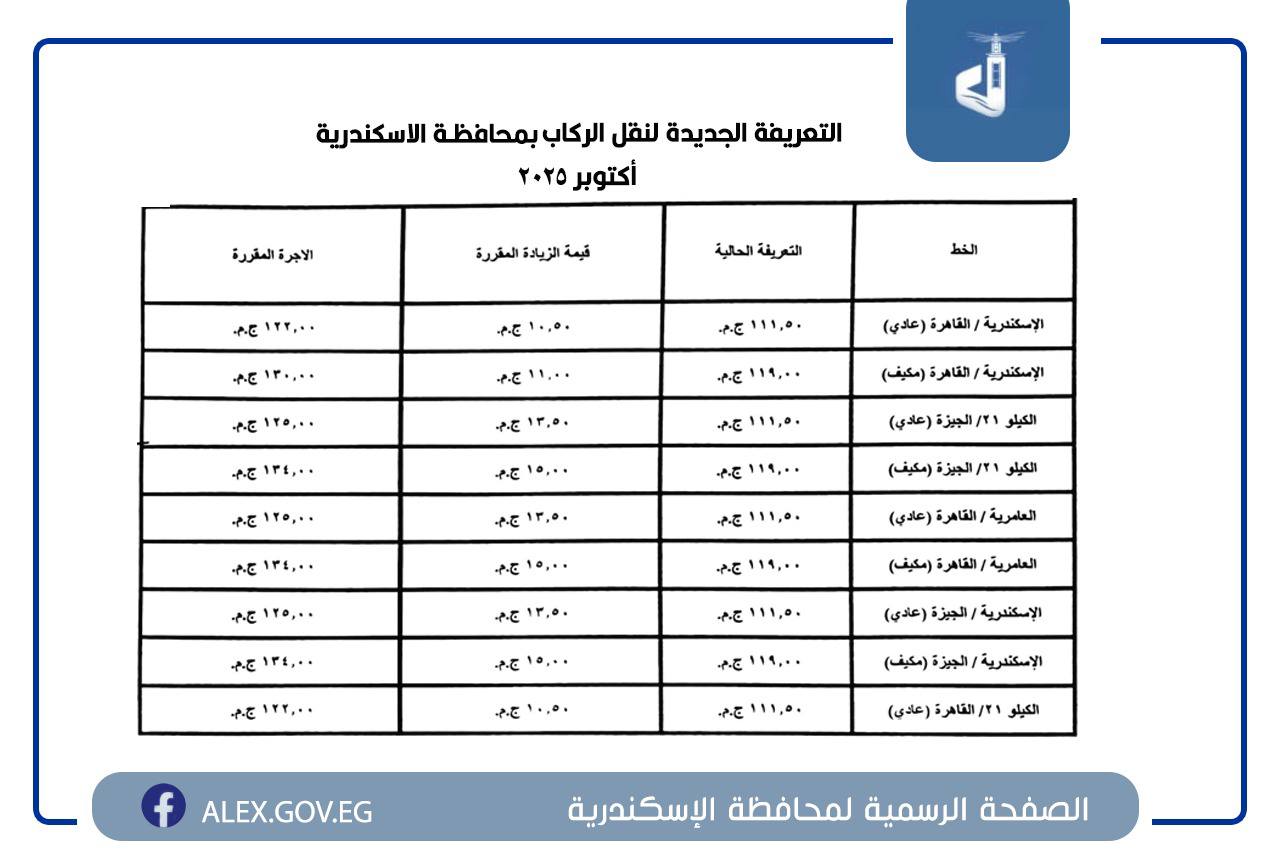 تعريفة المواصلات في محافظة الإسكندرية بعد زيادة أسعار البنزين