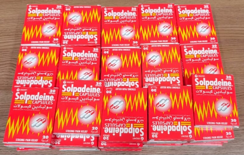وأسفر التفتيش، عن ضبط عدد 50 عبوة دواء بشري من ماركة Solpadeine Capsules، تحتوي كل عبوة على عدد 2 شريط، بكل شريط 10 أقراص، وبتفتيش الراكب ذاتيًا، لم يُعثر بحوزته على شيء آخر، وقدرت القيمة للأغراض الجمركية بمبلغ 30 ألف جنيه، بينما بلغت قيمة التعويضات المستحقة 60 ألف جنيه.