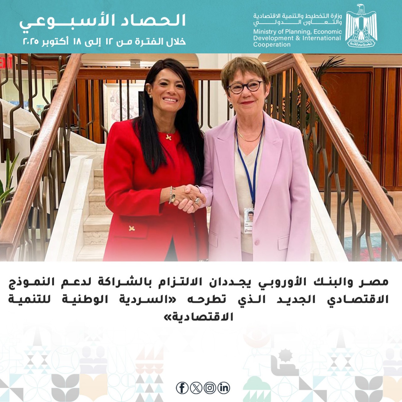 وأصدرت وزارة التخطيط والتنمية الاقتصادية والتعاون الدولي، والبنك الأوروبي لإعادة الإعمار والتنمية (EBRD)، أحد أكبر بنوك التنمية متعددة الأطراف في العالم، بيانًا مُشتركًا حول تطورات الإصلاح الاقتصادي والهيكلي في مصر، وإطلاق «السردية الوطنية للتنمية الاقتصادية: السياسات الداعمة للنمو والتشغيل»، وناقشت الجهود المشتركة لتمكين القطاع الخاص، والتوسع في آليات التمويل المبتكرة للشركات المحلية والأجنبية.