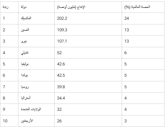 أكبر الدول المنتجة لمعدن الفضة 2024/2025