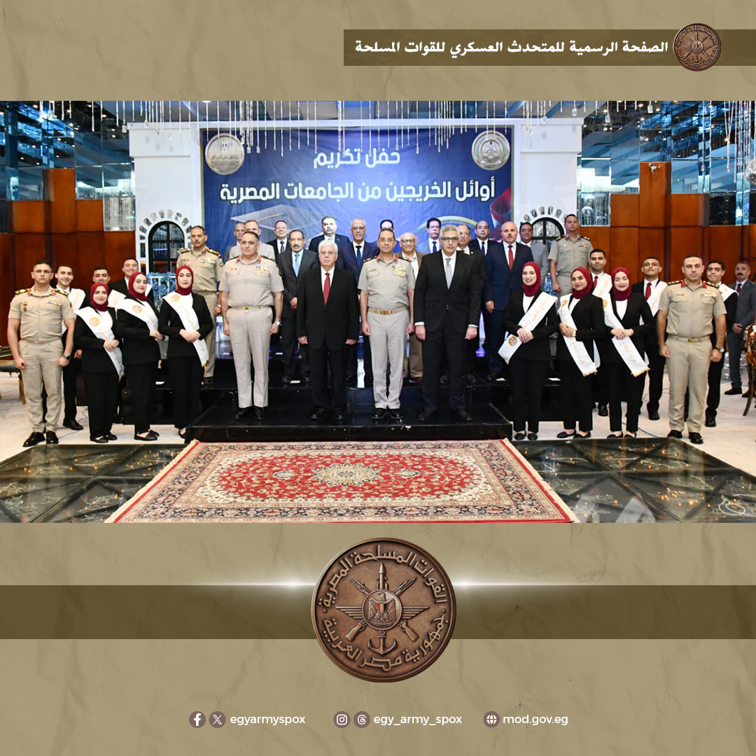 نظمت قوات الدفاع الشعبى والعسكرى بالتعاون مع وزارة التعليم العالي والبحث العلمي احتفالية لتكريم أوائل الطلبة من خريجى الجامعات المصرية للعام الدراسى الماضي، تقديراً لتميزهم العلمي وحرصهم على التفوق خلال مختلف المراحل الدراسية، وذلك بحضور الدكتور أيمن عاشور وزير التعليم العالي والبحث العلمي.