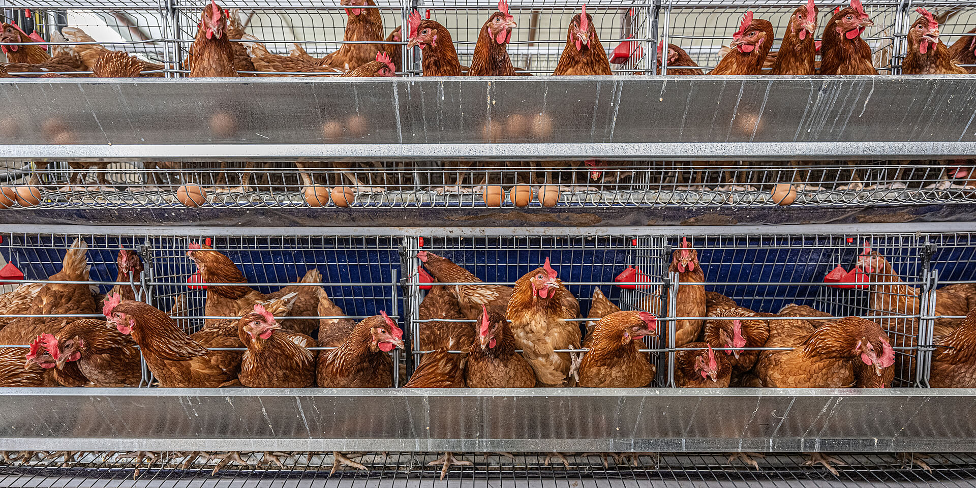 في أقفاص سلكية صغيرة كأنها بيوت مصغرة متراصة فوق بعضها البعض، تُحبس الدجاج بأعداد كبيرة ويتراح العدد من 100 لـ120 دجاجة في القفص الواحد، هذا هو نظام أقفاص بطاريات الدواجن، حيث تُجمع الحياة في فضاءات ضيقة، لتُنتج البيض الذي يصل إلى موائدنا وتعمل على زيادة جودته وتحسينه.