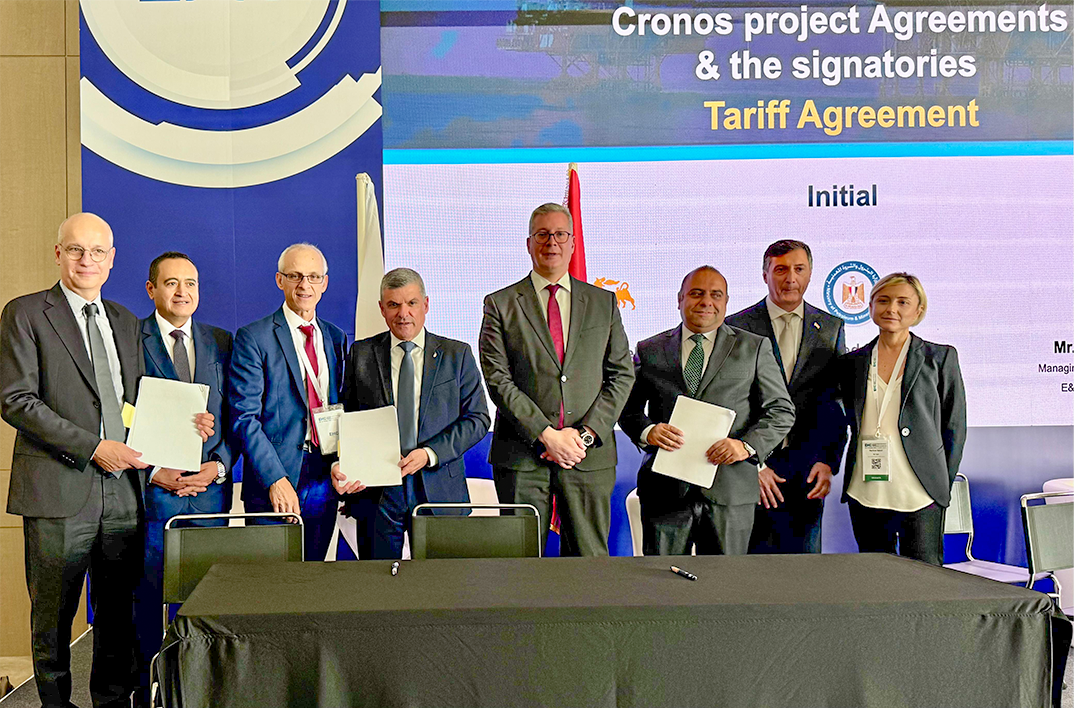 وقع الجانبان على اتفاقية تعريفة مشروع حقل كرونوس بين وزارة البترول والثروة المعدنية، وشركتي إيني وتوتال إنرجيز العالميتين، كما جرى التوقيع على اتفاقية المناولة والمعالجة والنقل لمشروع حقل كرونوس، ووقع الاتفاقية المهندس محمود عبد الحميد، رئيس الشركة المصرية القابضة للغازات الطبيعية (إيجاس)، ومن جانب شركاء الاستثمار وقع كلٌّ من فرانشيسكو جاسباري رئيس شركة ايوك برودكشن التابعة لشركة إيني الإيطالية، و أليساندرو جيلمِتّي، المدير العام لشركة إيني في قبرص و باسكال بريان، المدير العام لشركة توتال إنرجيز الفرنسية للاستكشاف والإنتاج في قبرص.