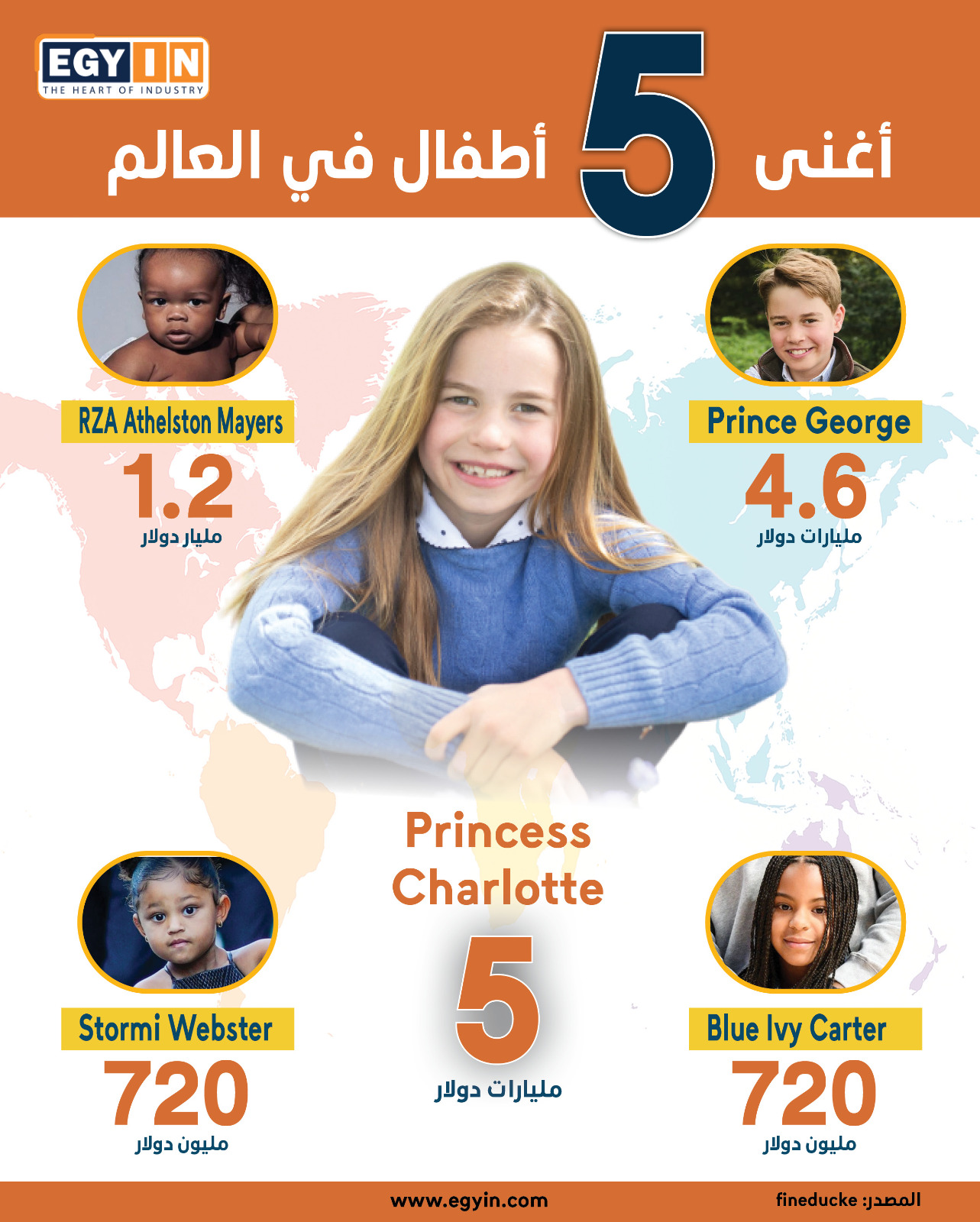 الأميرة شارلوت الأولى، أغنى 5 أطفال في العالم 2025 (إنفوجراف)