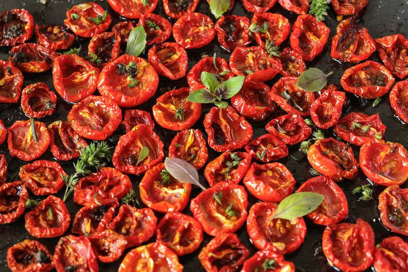 وتُستخدم الطماطم المجففة بالشمس على نطاق واسع، كمكون أساسي في مختلف المأكولات، خاصةً في مأكولات البحر الأبيض المتوسط، وتأتي بأشكال متعددة، منها الطماطم الكاملة والمقطعة إلى مكعبات وشرائح رفيعة ومعجون ومسحوق.