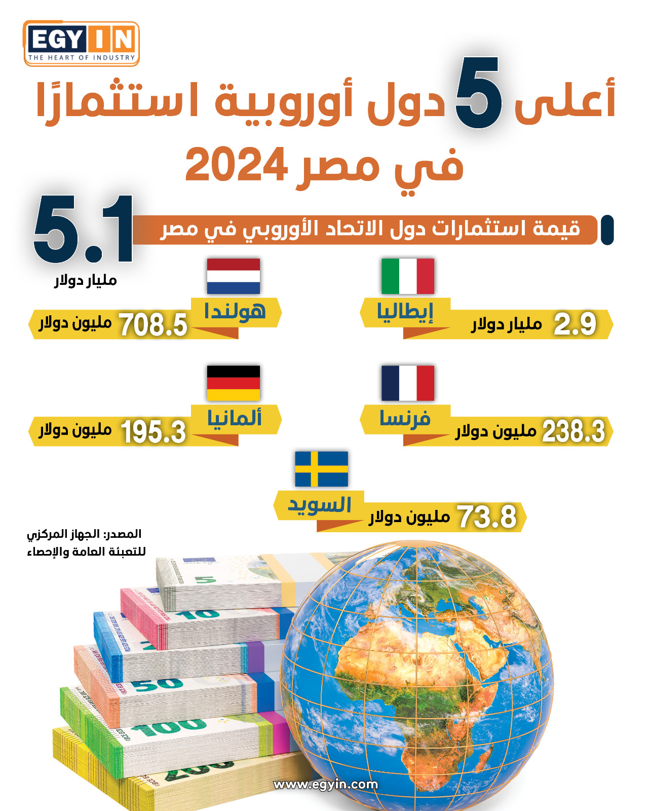 بـ5.1 مليار دولار، أعلى 5 دول أوروبية استثمارًا في مصر خلال 2024 (إنفوجراف)