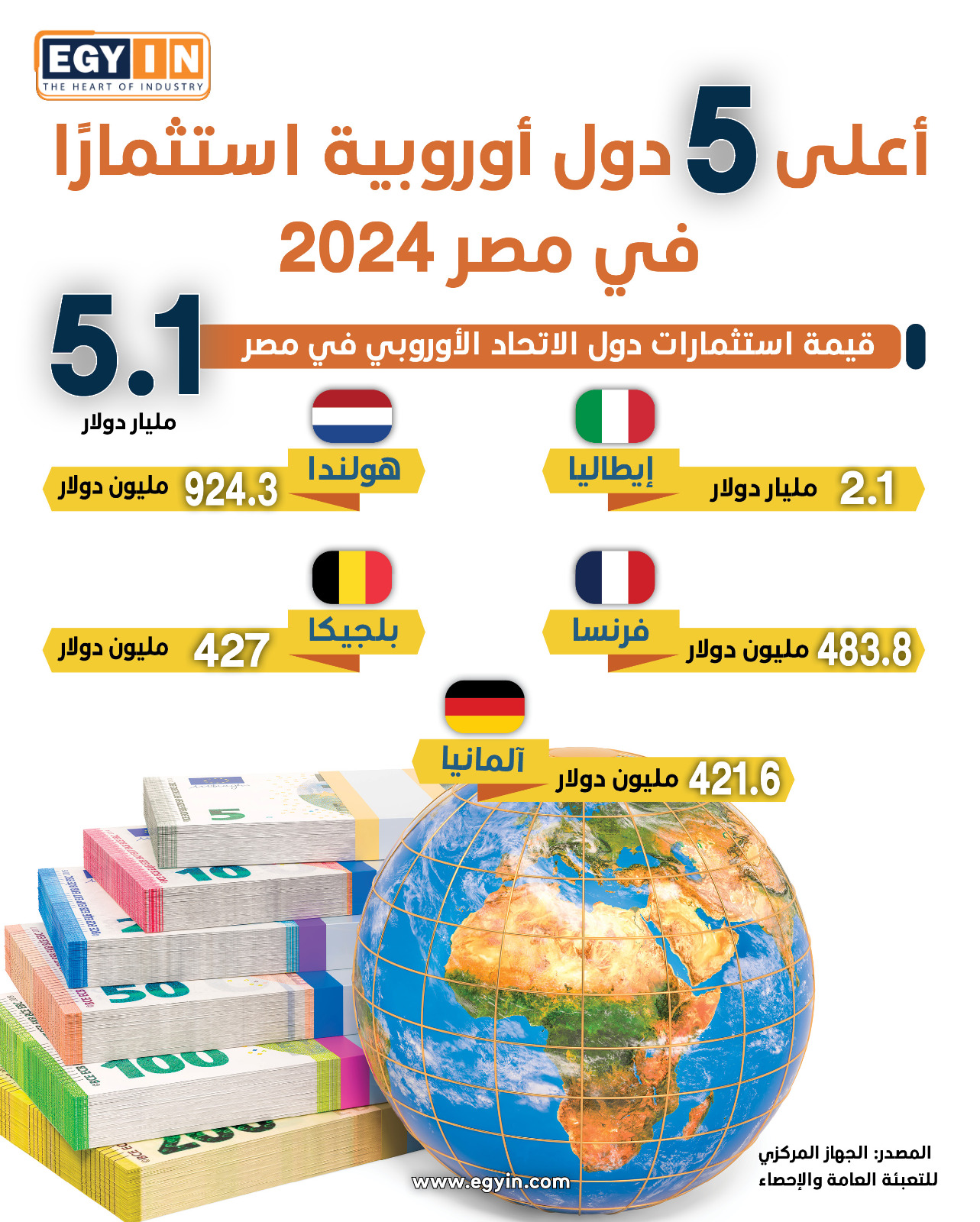 بـ5.1 مليار دولار، أعلى 5 دول أوروبية استثمارًا في مصر خلال 2024 (إنفوجراف)
