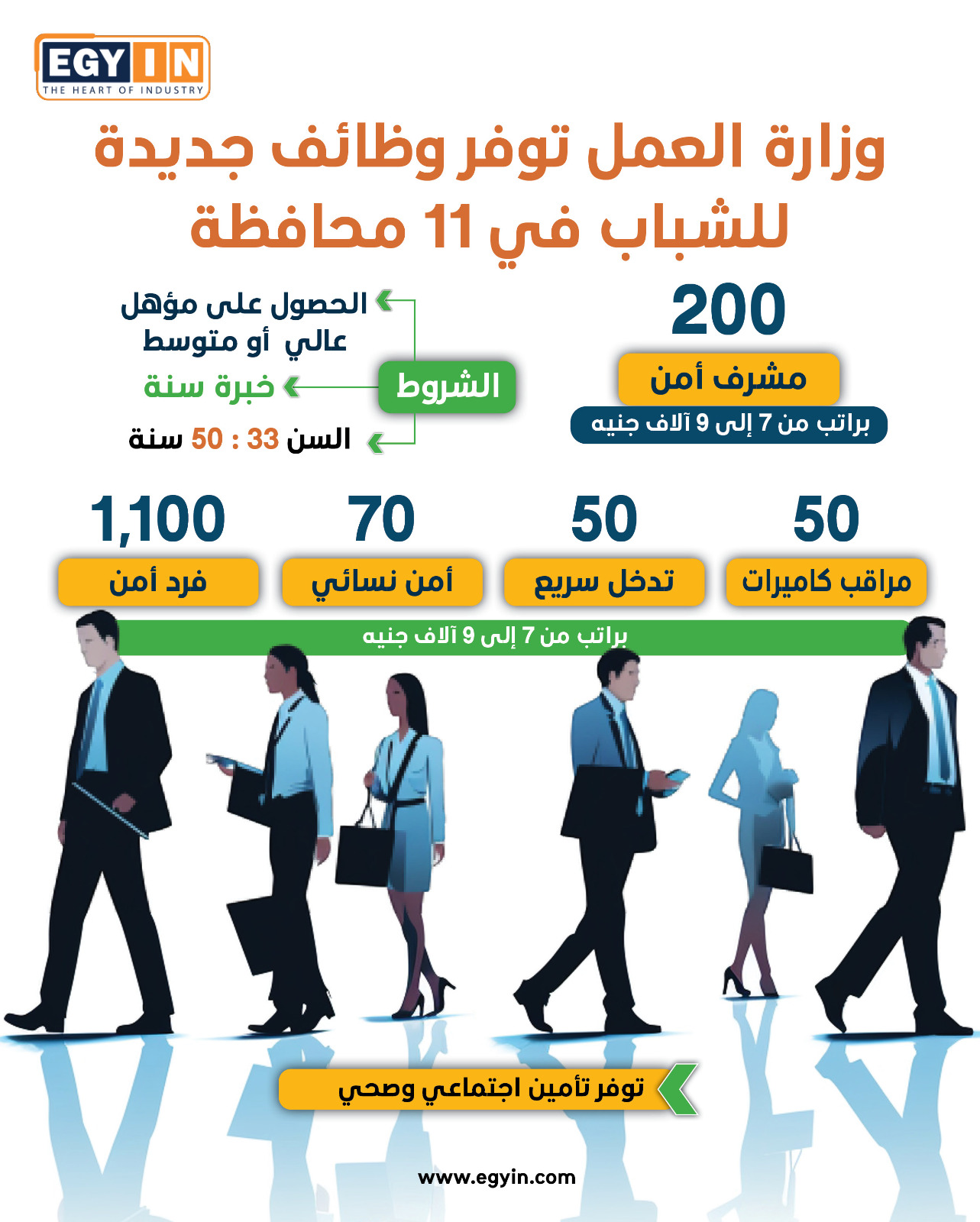 أعلنت وزارة العمل توفير فرص عمل جديدة للشباب، ضمن إصدار نشرة التوظيف الدورية كل 15 يومًا، من خلال الإدارة العامة للتشغيل، إذ تغطي هذه الوظائف 11 محافظة على مستوى الجمهورية.
