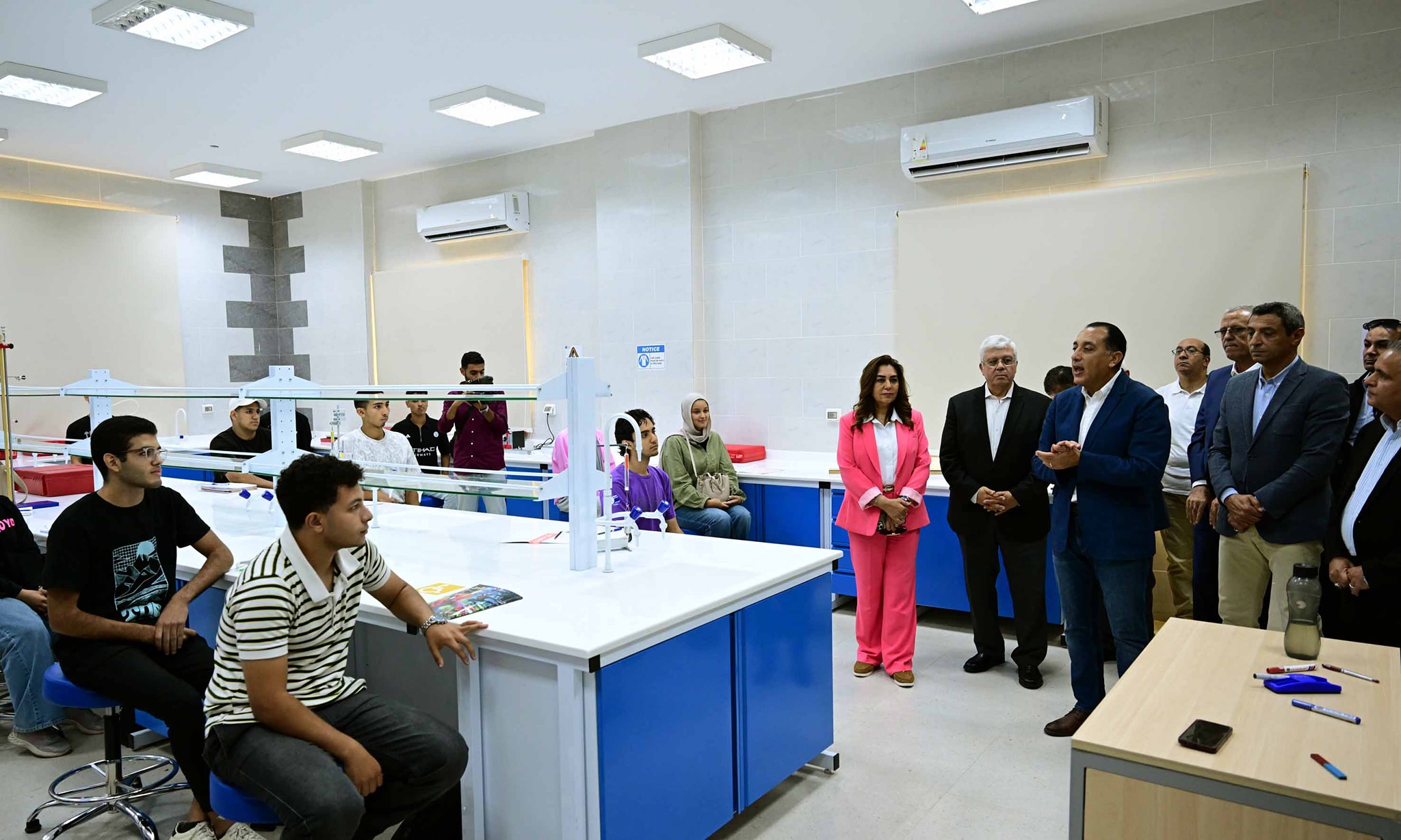 وواصل رئيس الوزراء جولته التفقدية بمدرجات الجامعة؛ وزار معمل الفيزياء لطلاب كلية الحاسبات والمعلومات والذكاء الاصطناعي، والذي تم تجهيزه بأحدث الأجهزة والنظم الرقمية لتدريب الطلاب على التطبيقات العملية للذكاء الاصطناعي والأنظمة الذكية وهو ما أشاد به.