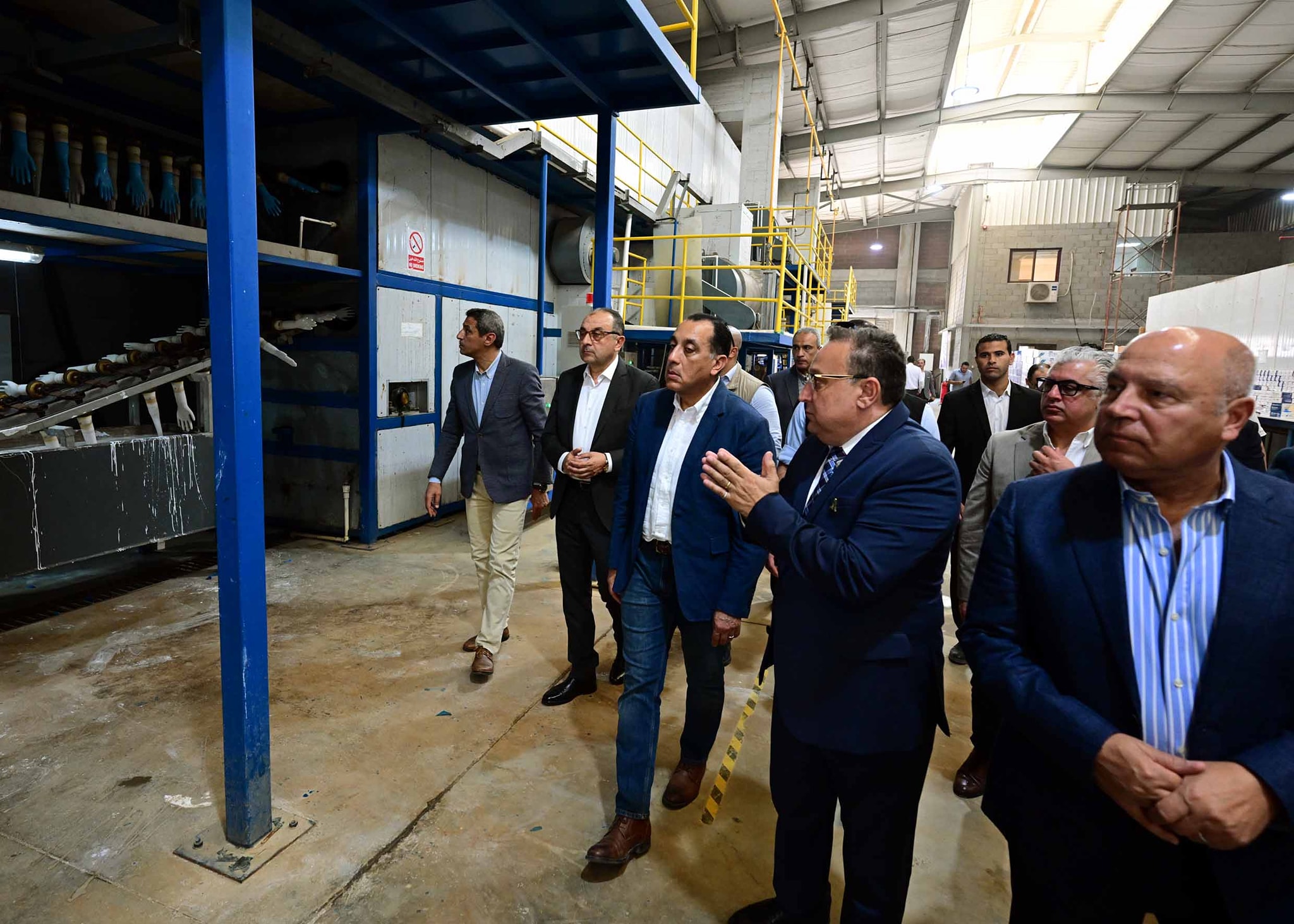 واستمع رئيس مجلس الوزراء إلى عرض قدمه حسام رفعت، المدير التنفيذي للمصنع، حول مراحل الإنتاج المختلفة داخل المصنع، بقدرة إنتاجية سنوية تصل إلى حول إلى60 مليون قفاز طبي.