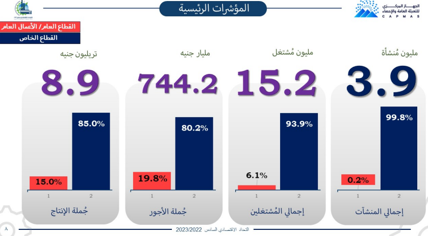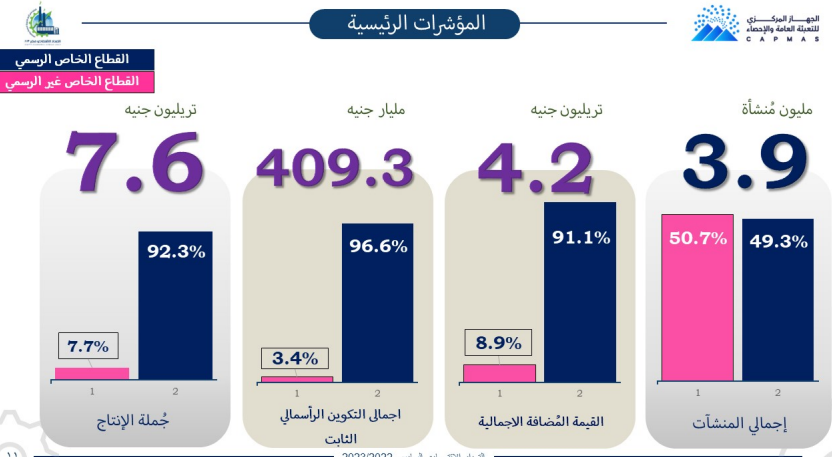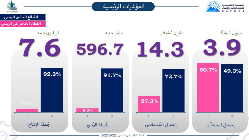 أعلن الجهاز المركزي للتعبئة العامة والإحصاء، خلال احتفالية اليوم العالمي للإحصاء، عن نتائج التعداد الاقتصادي السادس لعام 2022- 2023، والذي يعتبر من أهم المشروعات الإحصائية، إذ يوفر قاعدة بيانات شاملة تدعم خطط التنمية الاقتصادية والاجتماعية، وتُبرز حجم النشاط الاقتصادي بمختلف قطاعاته.