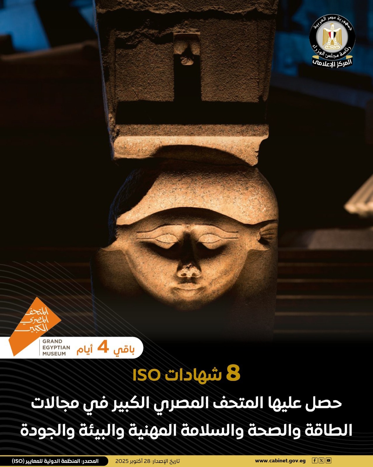 ويؤكد حصول المتحف المصري الكبير على هذه الشهادات الدولية التزامه بأعلى معايير الجودة والتميز في الأداء، ما يعكس مكانته كأحد أبرز الصروح الثقافية والحضارية على مستوى العالم، وواجهة مشرفة لمصر أمام المجتمع الدولي.