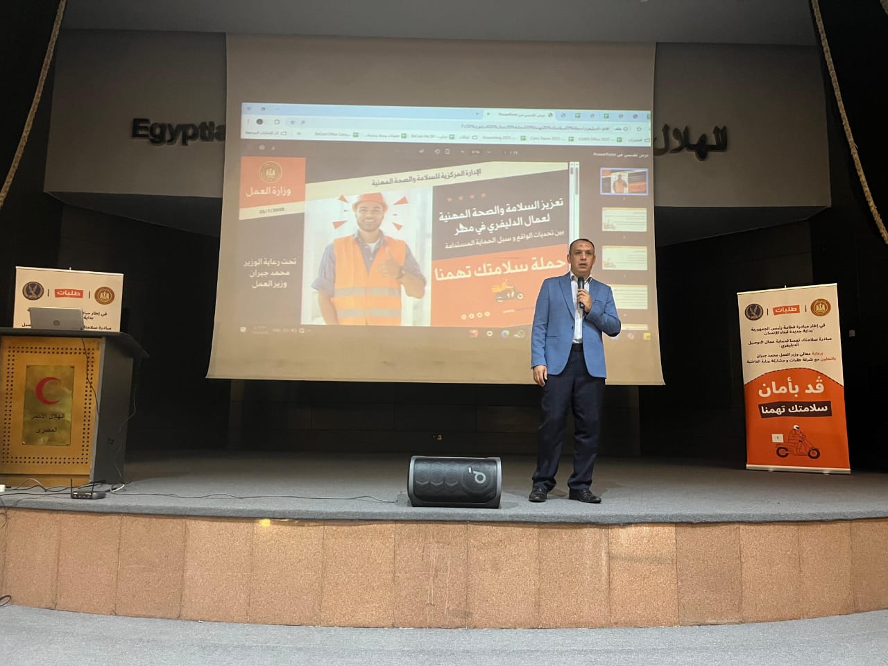 وشارك الدكتور محمود أبوبية، مدير عام إدارة تأمين بيئة العمل، بمحاضرة بعنوان “أهداف السلامة والصحة المهنية ومهمات الوقاية الشخصية وصيانة وسائل النقل المستخدمة”، كما تم عرض مجموعة من الفيديوهات التوضيحية التي أعدتها الإدارة المركزية للسلامة والصحة المهنية حول المخاطر، التي قد يتعرض لها عمال توصيل الطلبات أثناء أداء مهامهم اليومية.