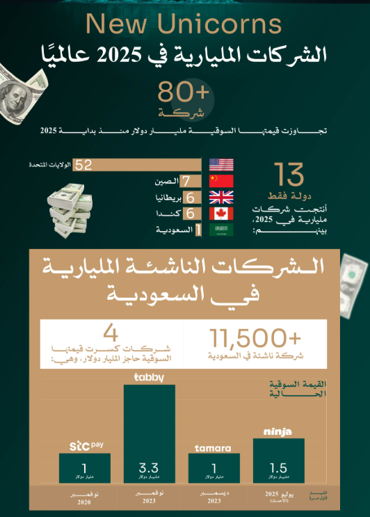 المملكة تدخل نادي الـ13، السعودية بين الدول المنتجة للشركات المليارية في 2025