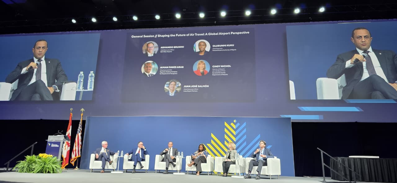 أدار الجلسة كيفن بيرك، رئيس المجلس الدولي للمطارات – أمريكا الشمالية (ACI-NA)، والتي تضمنت كل من أرماندو برونيني، الرئيس التنفيذي لمطارات ميلانو، وأولوبونمي كوكو، الرئيس التنفيذي لهيئة المطارات الفيدرالية النيجيرية (FAAN)، وسيندي نيكل، مديرة مطارات مقاطعة ساكرامنتو بالولايات المتحدة الأمريكية، وخوان خوسيه سالمون، الرئيس التنفيذي لـ (Lima Airport Partners)، وهي الشركة المسؤولة عن مطار ليما في بيرو، إلى جانب المهندس أيمن عرب ممثلاً عن مطارات مصر.