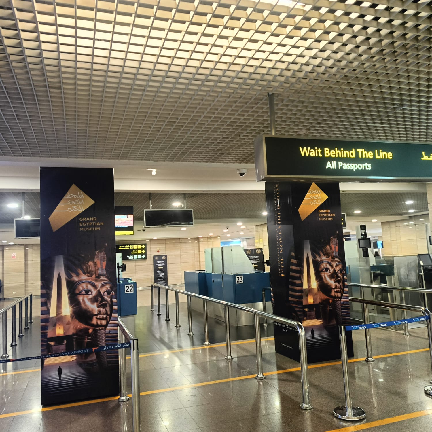 وفي الوقت ذاته، رفع مطار القاهرة الدولي درجة الاستعداد القصوى بجميع مباني الركاب (1، 2، 3، و4) ، لاستقبال كبار الزوار والوفود الرسمية وضيوف مصر من مختلف الدول، من خلال تنفيذ خطة تطوير شاملة، حيث تم تجهيز كاونترات مخصصة للوفود القادمة، ووضع بانرات تعريفية متعددة اللغات عن المتحف المصري الكبير.