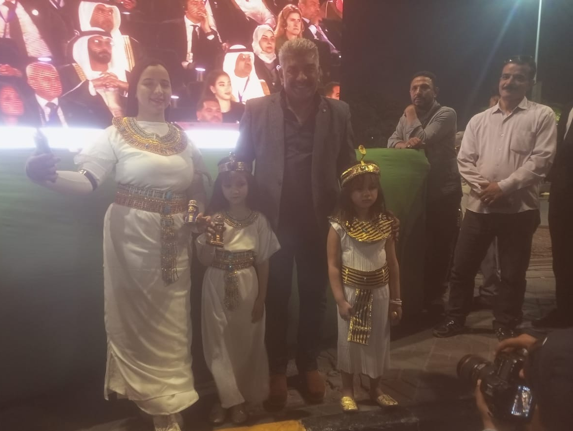 "بالزي الفرعوني" .. أسرة مصرية تحتفي بافتتاح المتحف المصري