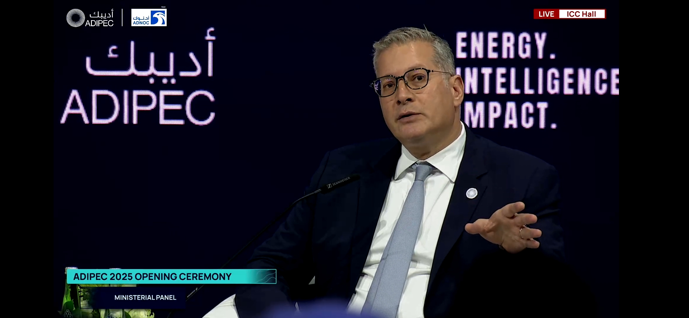 وتحدث وزير البترول والثروة المعدنية في الجلسة الوزارية الإفتتاحية للمؤتمر بعنوان «واقع الطاقة: ضمان مستقبلٍ آمن في عالمٍ مليء بالتحديات»، بمشاركة المهندس سهيل المزروعي وزير الطاقة والبنية التحتية بدولة الإمارات، والمهندس سعد بن شريدة الكعبي وزير الدولة لشؤون الطاقة في قطر .
