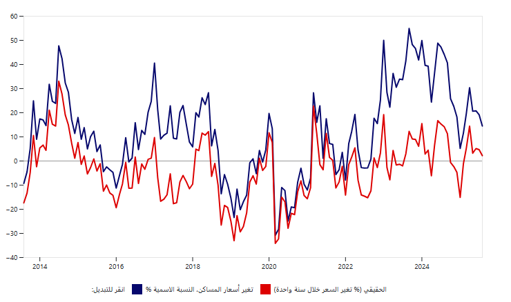 ارتفعت أسعار العقارات خلال عام 2024 بنسبة 18.2% ظاهريًا، لكن بعد احتساب التضخم، انخفضت قيمتها الحقيقية بنسبة 4.8%، ويعود ذلك إلى أن معدل التضخم كان أكبر من نمو أسعار العقارات، مما أدى إلى تآكل القيمة الحقيقية للعقارات، على الرغم من الارتفاع الاسمي للأسعار.