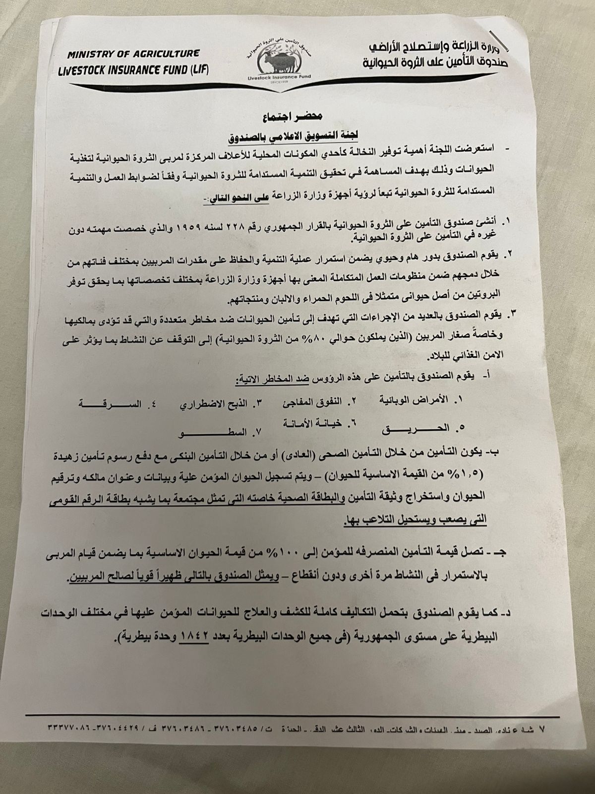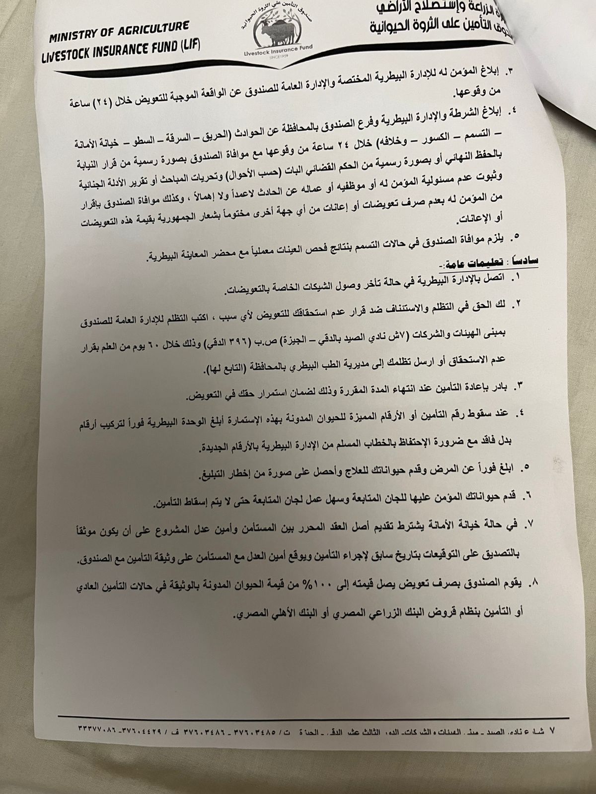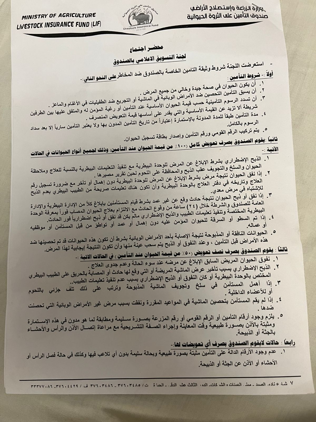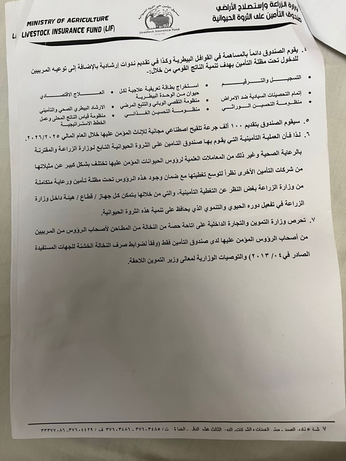 وأثنى على قرار الدعم الحكومي للمربي البسيط، وحصوله على إعانة مادية من صندوق التأمين على المذبوحات، مطالبًا الفلاح البسيط بسرعة التسجيل لدى الوحدة الصحية التابع لها، نظير دفع مبلغ زهيد بنحو 300 جنيه سنويًا، مؤكدًا ان هذه القرار، يستهدف الحفاظ على الثروة الحيوانية في مصر.