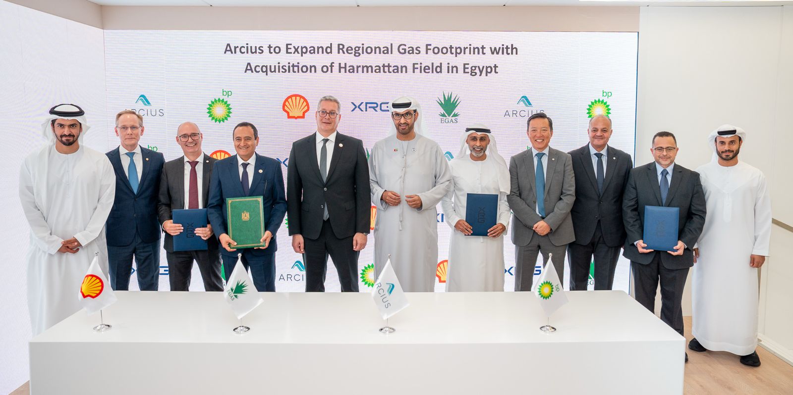 شهد المهندس كريم بدوي وزير البترول والثروة المعدنية، والدكتور سلطان الجابر وزير الصناعة والتكنولوجيا المتقدمة بدولة الإمارات العربية المتحدة، والعضو المنتدب والرئيس التنفيذي لمجموعة أدنوك وشركاتها، توقيع اتفاقية استحواذ بين الشركة المصرية القابضة للغازات الطبيعية (إيجاس) وشركة أركيوس وشركتي شل وبي بي، حصلت بموجبها أركيوس على كامل حقوق الإنتاج والاستغلال في اتفاقية التزام منطقة البرج البحرية بالبحر المتوسط.