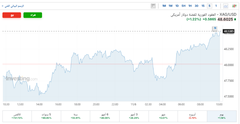 أسعار الفضة تستعيد بريقها اليوم الخميس مدعومة بالصعود العالمي