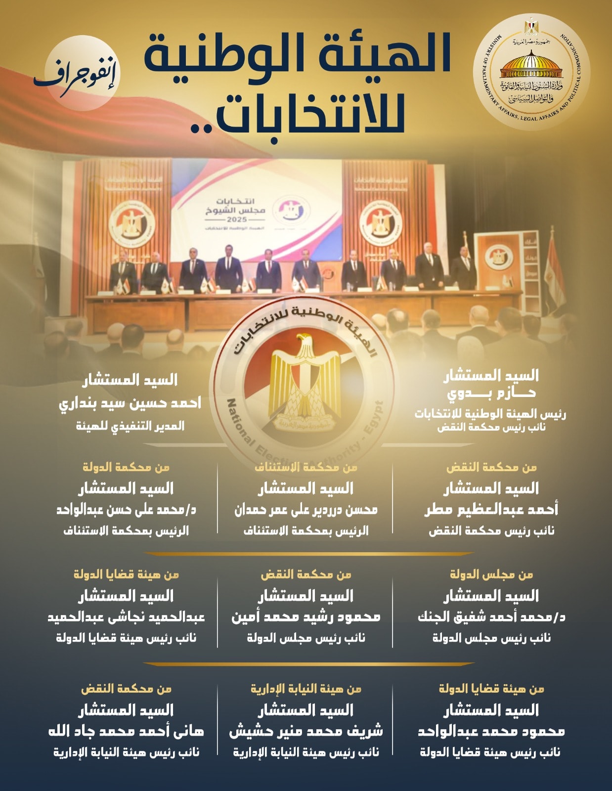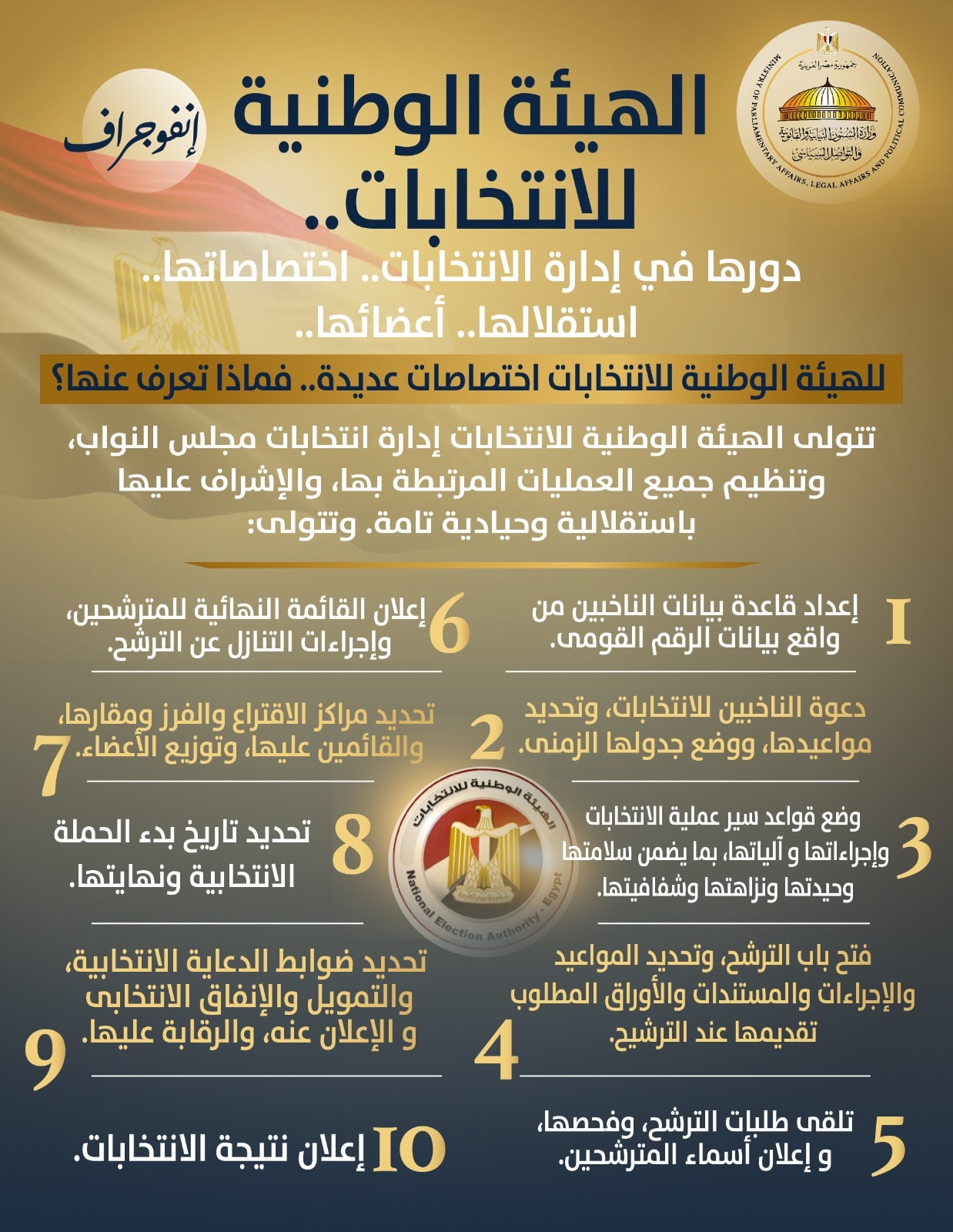 "الشئون النيابية" توضح دور الهيئة الوطنية للانتخابات في إنفوجرافات توعوية