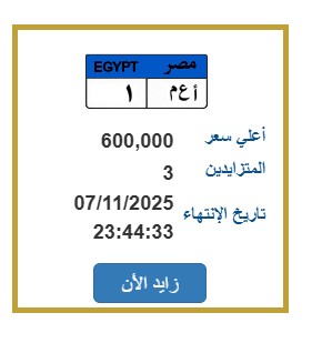 تحظى اللوحة الخاصة «أ ع م 1» بإقبال متزايد بين هواة لوحات السيارات النادرة في مصر، ويتوقع أن يسجل السعر النهائي، رقمًا قياسيًا إذا دخل مزايدون آخرون في المنافسة.