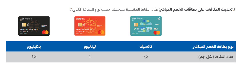 تحديث المكافآت على بطاقات الخصم المباشر