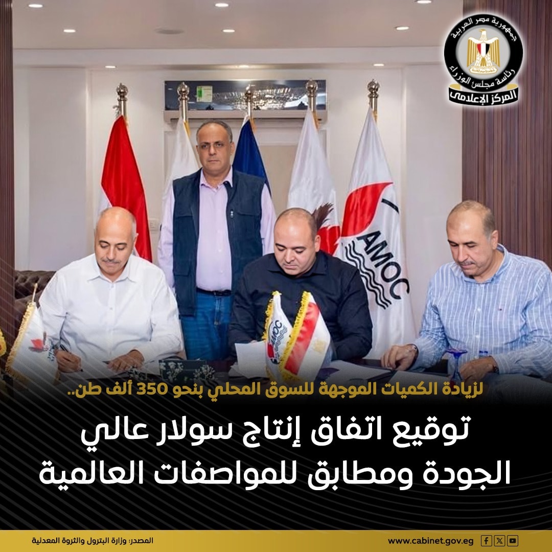 وقعت شركتا الإسكندرية للزيوت المعدنية (أموك) والشرق الأوسط لتكرير البترول (ميدور) اتفاقًا مشتركًا ستعمل بموجبه الشركتان على التعاون لزيادة الكميات الموجهة للسوق المحلى من إنتاج السولار عالي الجودة والمطابق للمواصفات العالمية بنحو 350 ألف طن.