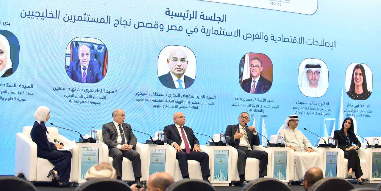 جاء ذلك خلال مشاركته في الجلسة الرئيسية لمنتدى التجارة والاستثمار المصري الخليجي، الذي استضافته القاهرة تحت عنوان “خارطة طريق نحو تعزيز التعاون الاقتصادي”، بحضور اللواء بحري الدكتور نهاد شاهين، نائب وزير النقل للنقل البحري، والوزير مفوض تجاري مصطفى شيخون، نائب رئيس مجلس إدارة الهيئة العامة للمنطقة الاقتصادية لقناة السويس للاستثمار والترويج، والدكتور جمال السعيدي، رئيس مجموعة القادة القابضة وعضو مجلس الأعمال المصري الإماراتي، ونهى خليل، القائم بأعمال المدير التنفيذي للصندوق السيادي المصري.
