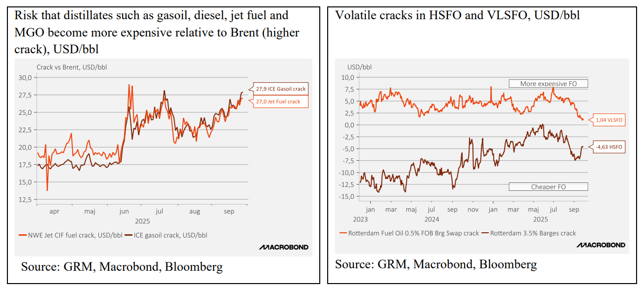 وببساطة، يتوقع المحللون، أن أنواع الوقود الثقيل مثل HSFO أو VLSFO، سترتفع أسعارها خلال 2026، وستجني أرباحًا أكبر بكثير من خام برنت، وهذا سيكون بسبب إما ارتفاع أسعارها متفوقة عن ارتفاع سعر خام برنت، أو انخفاض أسعار ولكن بمعدل أقل من الانخفاض الذي سيتأثر به خام برنت.