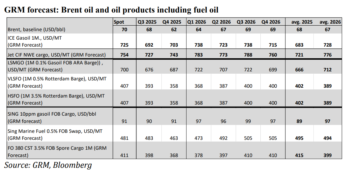 أما بالنسبة للوقود، فتشير التوقعات أن النوع عالي الكبريت (HSFO 3.5%)، ستنخفض أسعاره، و النوع منخفض الكبريت (VLSFO 0.5%)، من المتوقع أن تستقر أسعاره وقد ترتفع خلال 2026، على الرغم من حالة الانخفاض الذي يعاني منها في السوق الآن.